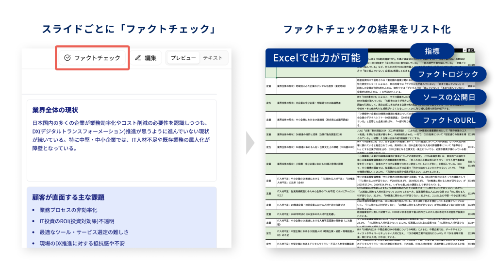 • ・アウトプットと出典の結び付きの明示によりファクトチェックプロセスの効率化
