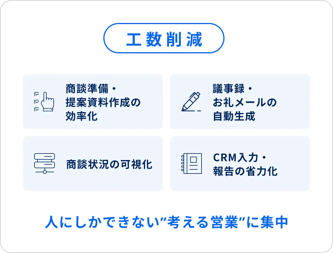 商談内容を録画・文字起こし・構造化し、議事録やCRM入力までを一括で完了。