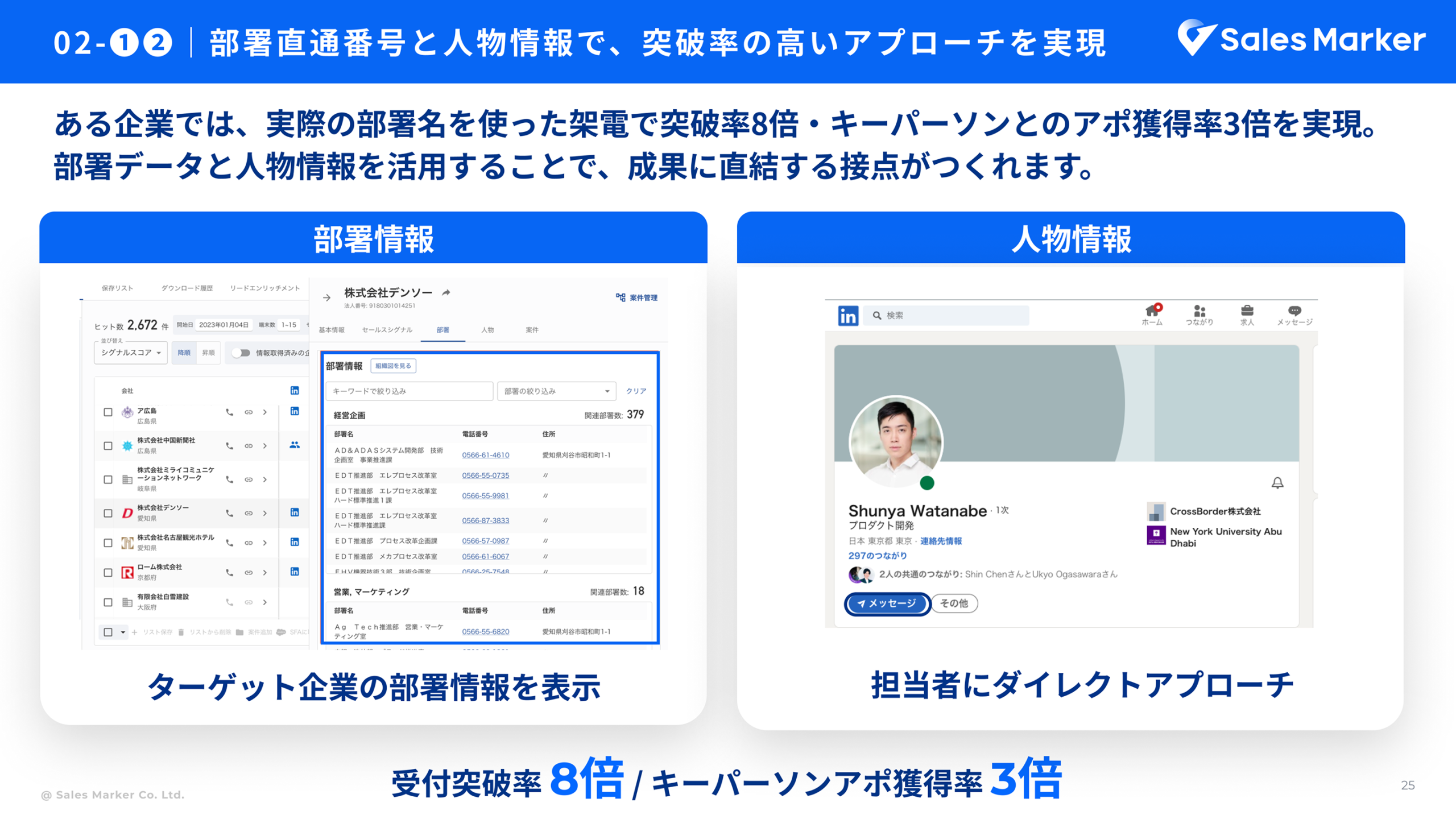 Sales Markerは、顧客の興味関心や検討状況を"インテントデータ"で可視化し、商談獲得に直結するアプローチを実現します。