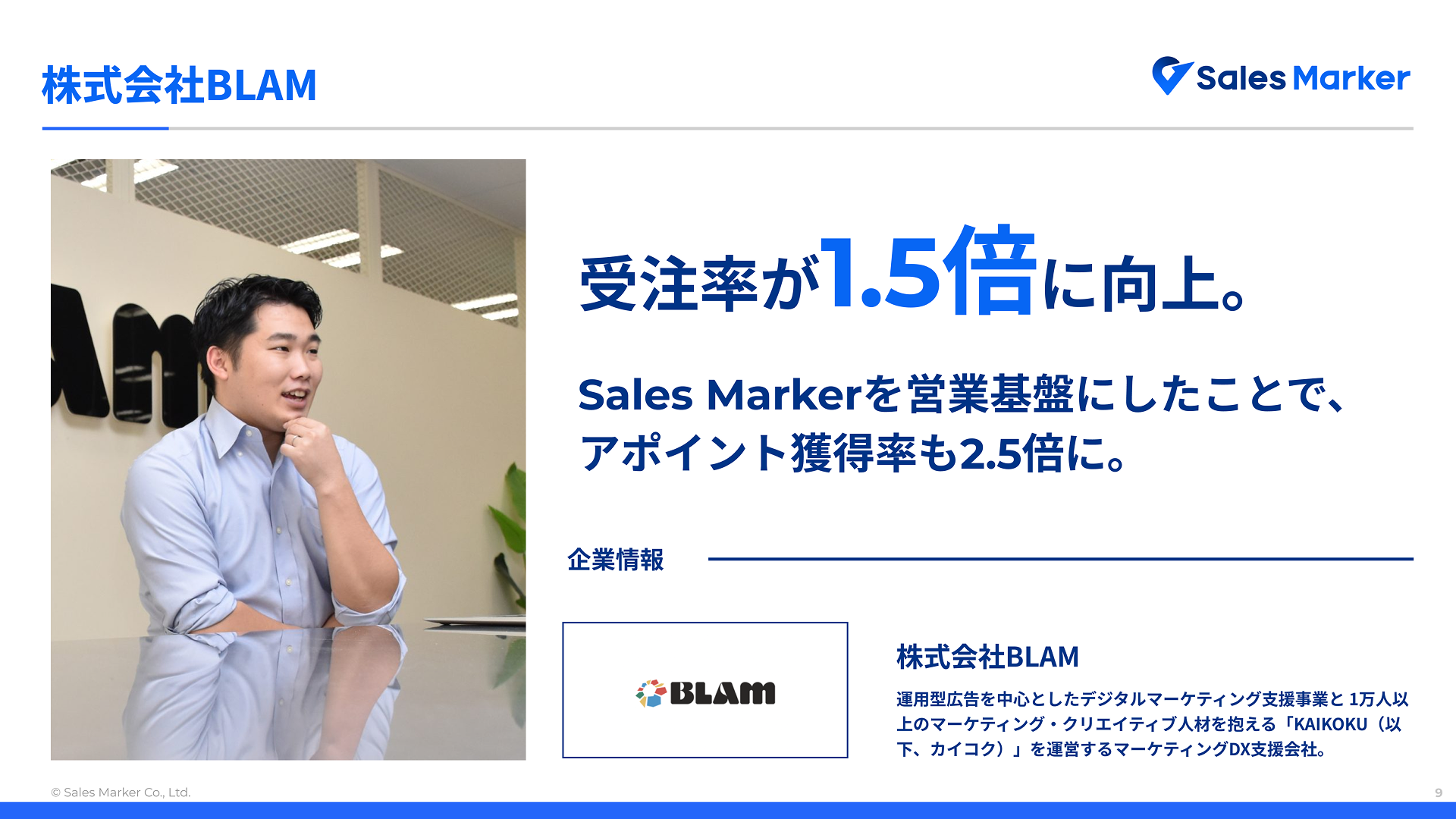 - Sales Markerを基盤とした営業プロセスで受注率1.5倍を実現した事例