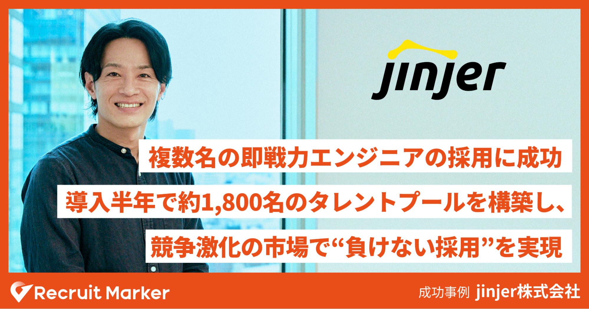 「インテントリクルーティング」を実現する国内初※1の採用プラットフォーム『Recruit Marker(リクルートマーカー)』。その開発元である株式会社Sales Marker(本社:東京都渋谷区、代表取締役 CEO:小笠原 羽恭)は、統合型人事システム『ジンジャー』2を提供するjinjer株式会社(本社:東京都新宿区、代表取締役社長 CEO:冨永 健、以下:jinjer)が、Recruit Markerを活用したインテントリクルーティングの実践により、複数名のエンジニア採用に成功し、導入半年で約1,800名のタレントプールおよび採用パイプライン構築を実現したことをお知らせします。
