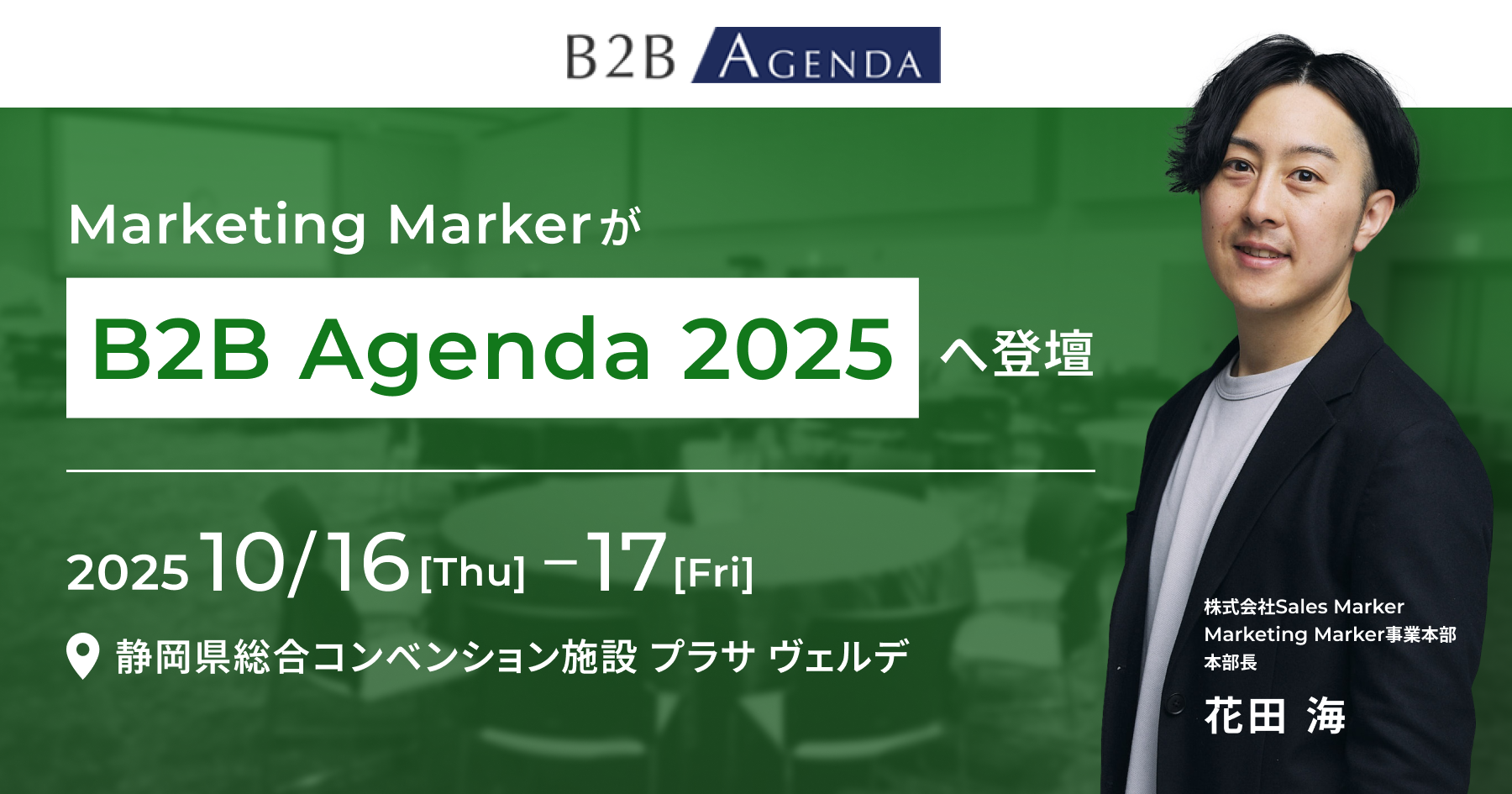 株式会社Sales Marker(本社:東京都渋谷区、代表取締役 CEO:小笠原 羽恭、以下:当社)は、当社が開発・提供する次世代型マーケティングプラットフォーム『Marketing Marker(マーケティングマーカー)』が、2025年10月16日(木)~17日(金)に開催される国内最大級のBtoB特化型マーケティングカンファレンス「B2B アジェンダ 2025」に登壇することをお知らせします。