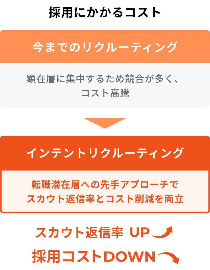 人材紹介や媒体スカウトでは、競合も多く転職顕在層の奪い合いに。そのため、コストは高止まり。