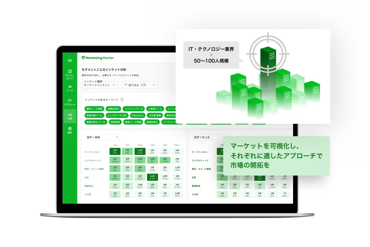「今まさに情報収集中・検討中」の企業をインテントデータで特定し、最適な訴求メッセージを自動で出し分け。