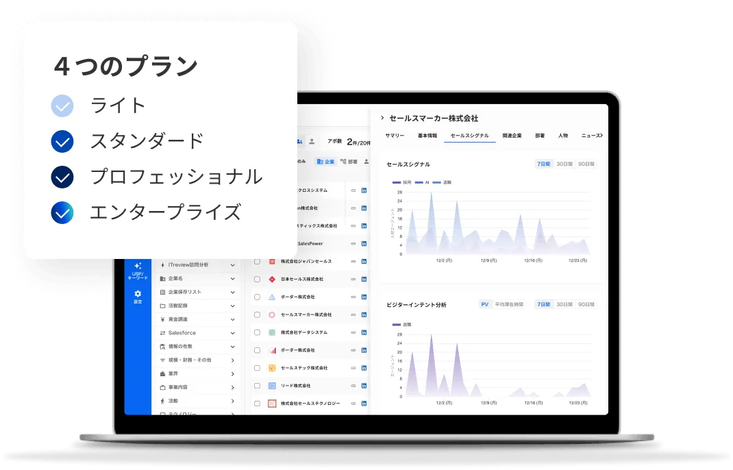 Sales Markerは、インテントデータ(興味関心データ)用いて潜在顧客のニーズや興味関心を正確に把握。独自のアルゴリズム「セールスシグナル®︎」で「今アプローチすべき企業」を導き出し、アポ獲得数や商談化率を大幅に向上させ、成果の最大化を実現します。