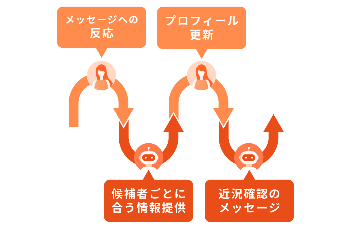 候補者の変化に応じて、最適なタイミングと頻度で自動フォロー。接点が途切れない仕組みをつくることで、面談につながる機会を逃しません。