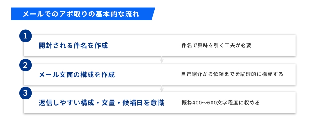ここでは、メールでアポ取りを成功させるための基本的な流れを紹介します。