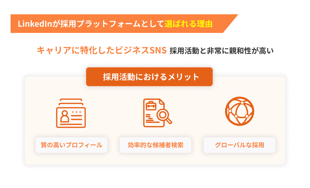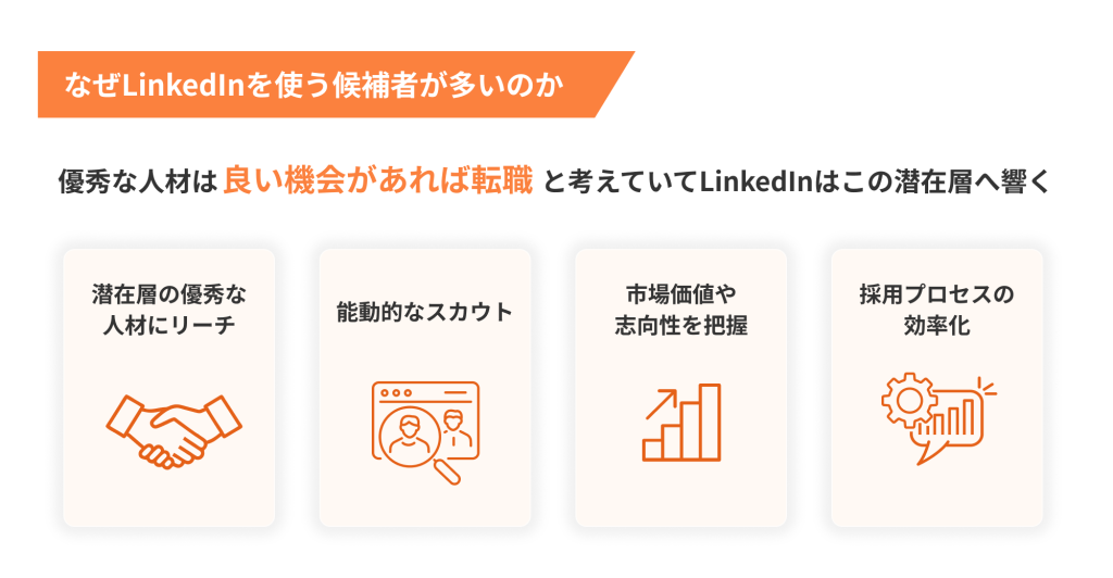 LinkedInには、従来の求人媒体や人材紹介にはない独自のメリットがあります。