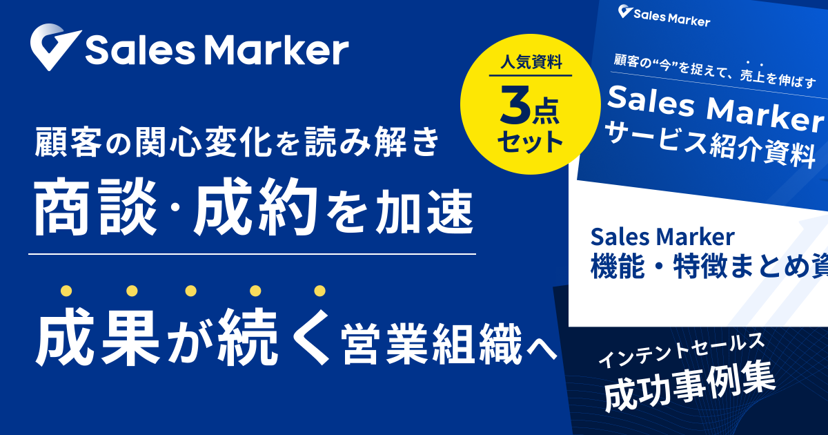 例えば、特定の業務課題や解決策を頻繁に検索している企業は、まさにその課題に直面している可能性が高いといえます。Sales Markerをはじめとするインテントセールスツールを活用すれば、こうした「購買意欲(インテント)」が高まっている見込み顧客を自動で検知できます。