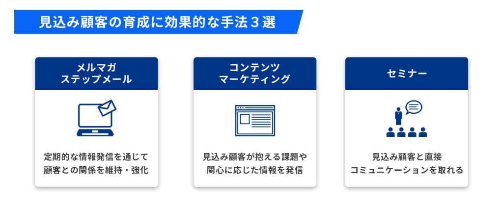 ここでは、見込み顧客の育成に効果的な3つの手法を紹介します。