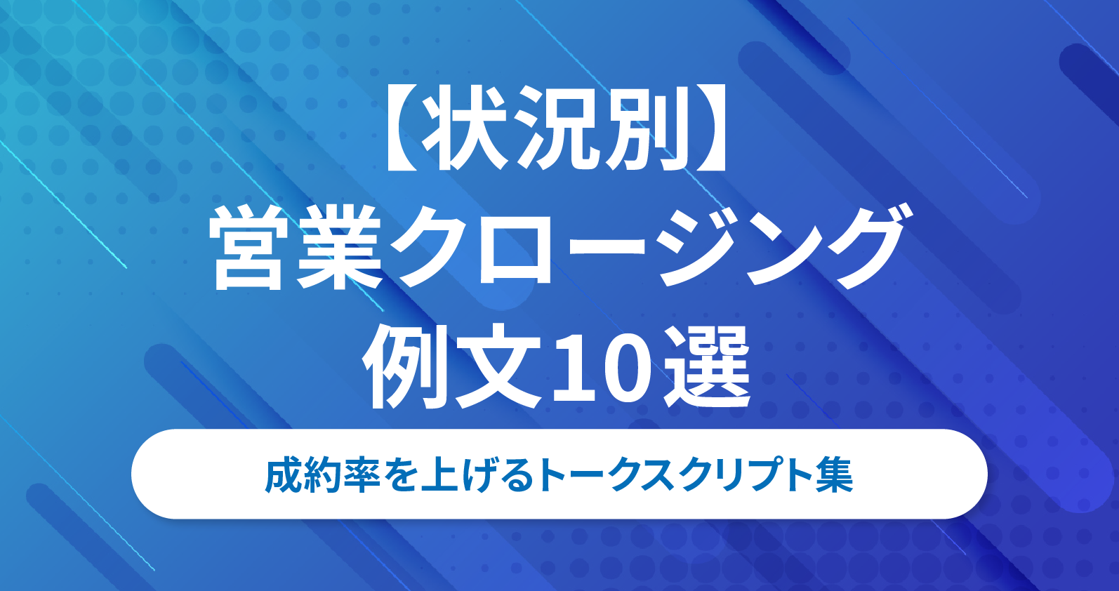 そこで本記事では、営業現場ですぐに使える「クロージングの例文」を状況別に10選紹介します。あわせて、成約率を上げるための話し方や、失注してしまった際の対応についても解説します。自信を持ってクロージングを行い、成果を上げたい方は、ぜひ参考にしてください。