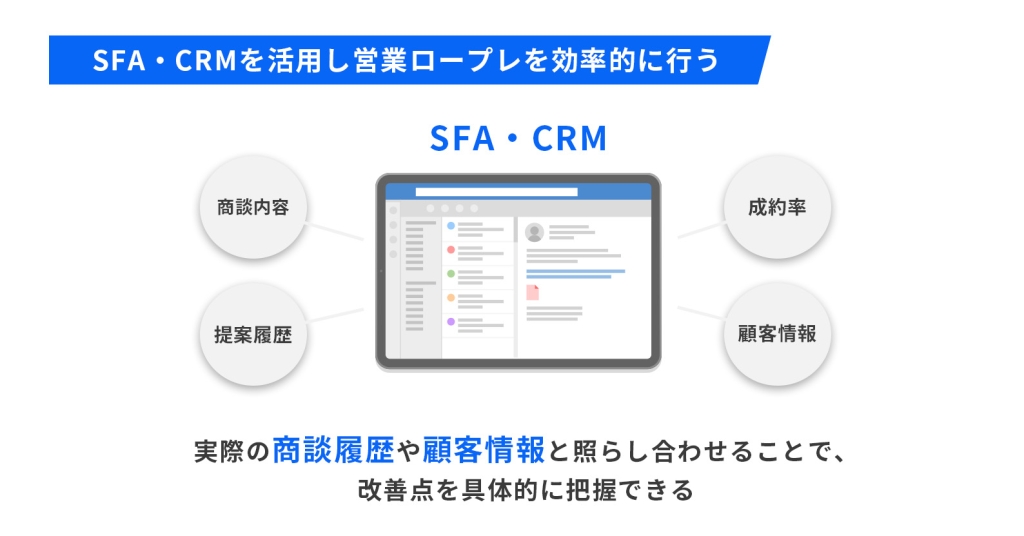 ただし、ただロープレを実施するだけでは成果につながりません。ペルソナ設定やシナリオ設計を丁寧に行い、評価・改善のサイクルを回すことが重要です。また、生成AIやSFA/CRMを活用してフィードバックを可視化すれば、練習の精度と継続性を一段と高められます。