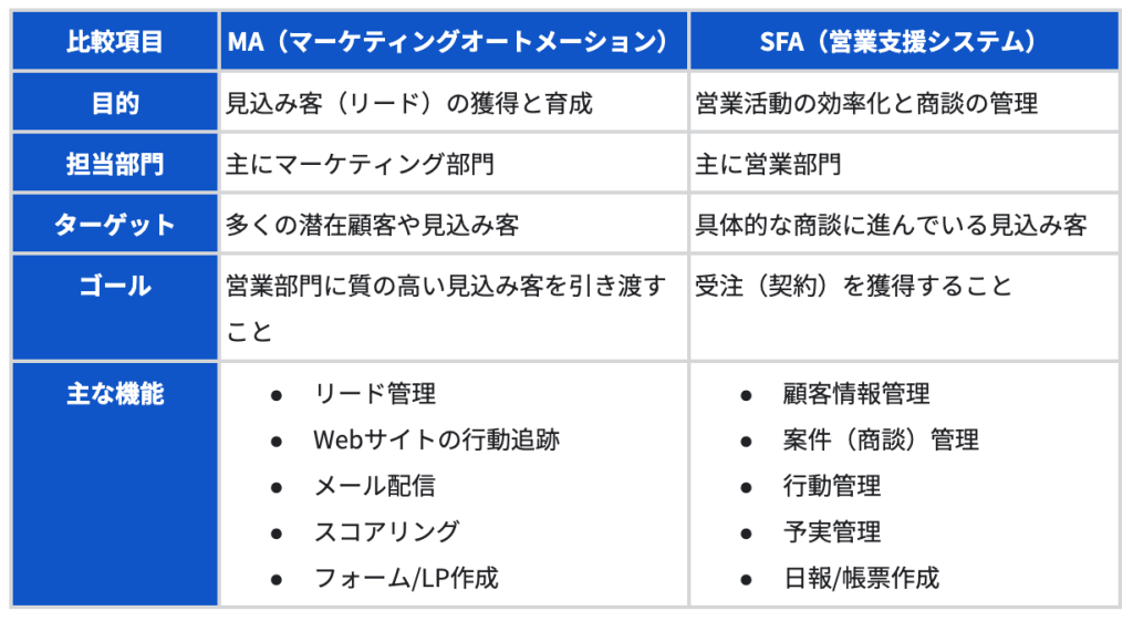 SFA(営業支援システム)とは、営業活動における顧客情報や商談の進捗、営業担当者の行動履歴などを一元管理し、営業活動を効率化・可視化するためのシステムを指します。