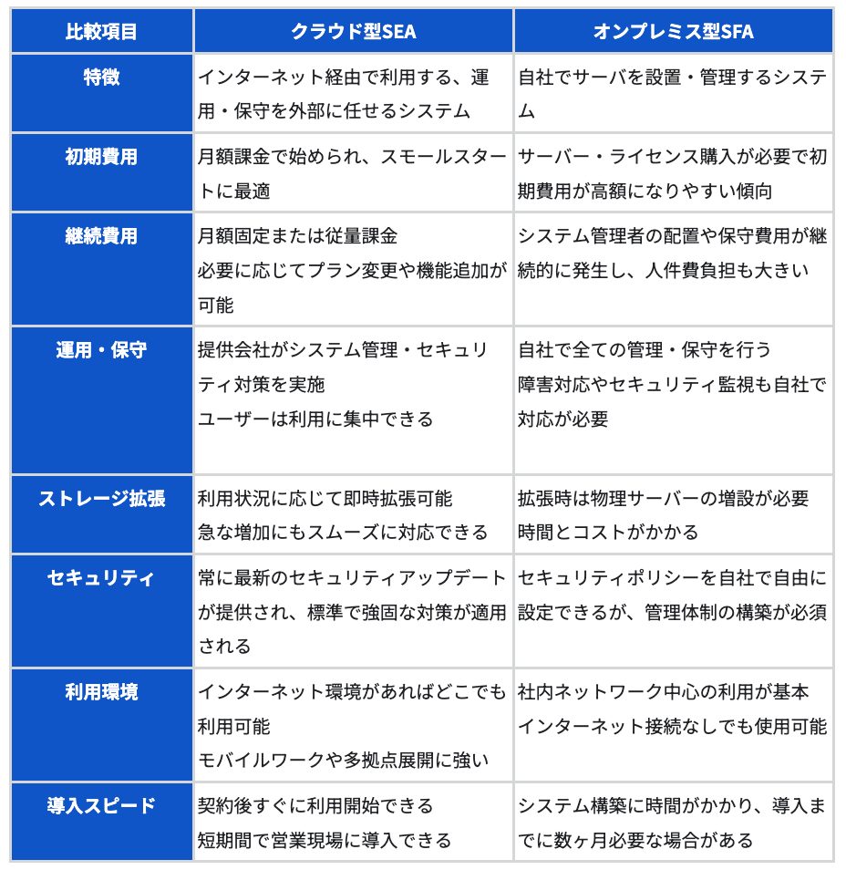 - クラウド型SFAとオンプレミス型SFAの比較