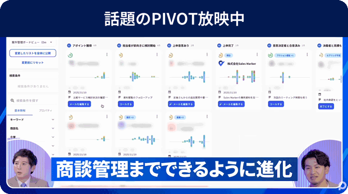 さらに「インテントパイプライン」が顧客の重視点や関心の高まりを補完し、判断の“軸”まで可視化します。これにより提案に必要な前提情報が整い、顧客の方向性に沿った提案が組み立てやすくなり、商談の確度が高まります。